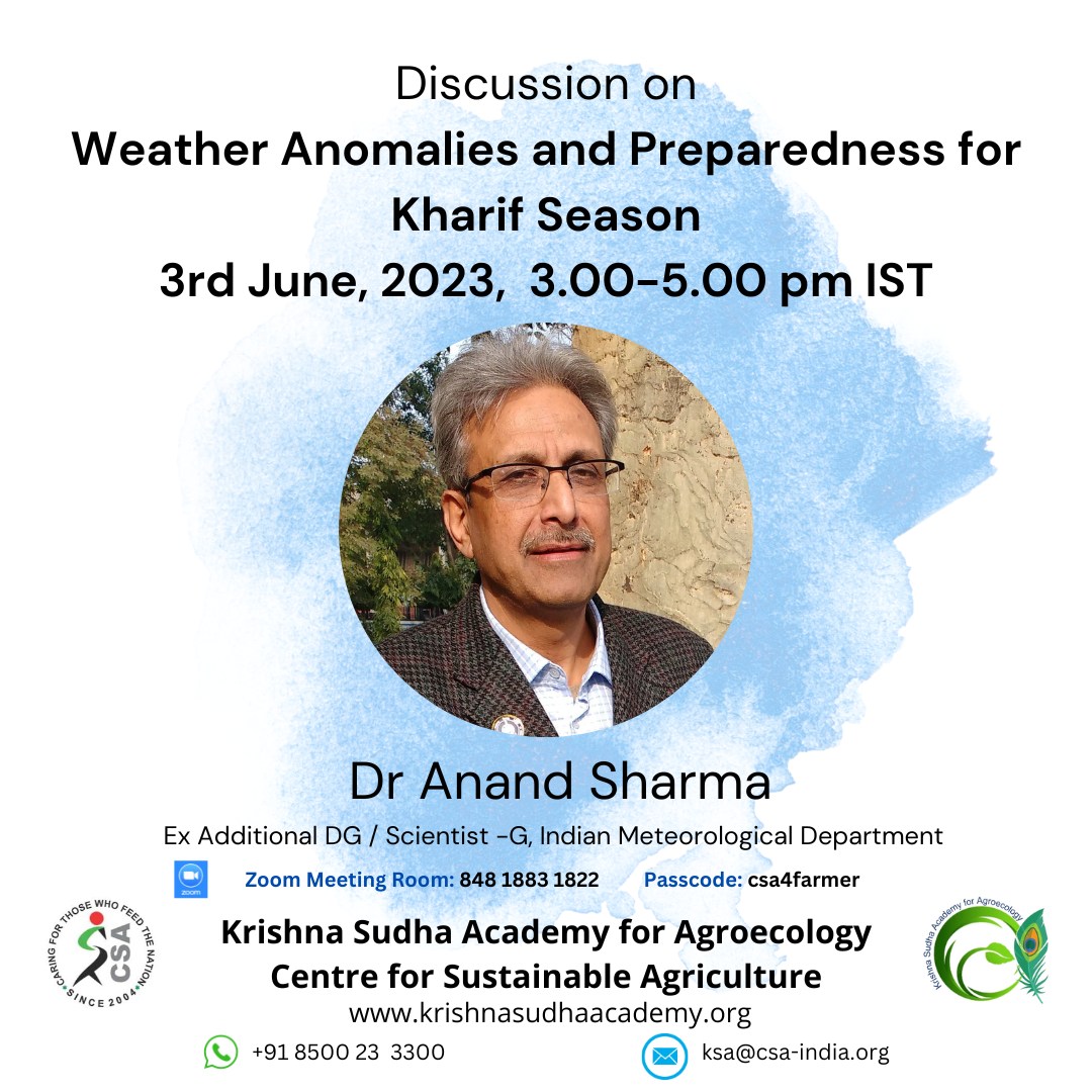 Unpredictable weather, in addition to pests and diseases, adds to the list of crop-damaging factors. With neither risk mitigation efforts nor the risk coverage mechanisms working, it is pushing the farmers and their crops into losses. In this context, a discussion was organized with Dr Anand Sharma, Ex Additional DG/Scientist-G, Indian Meteorological Department to understand the weather anomalies and preparedness for Kharif.
